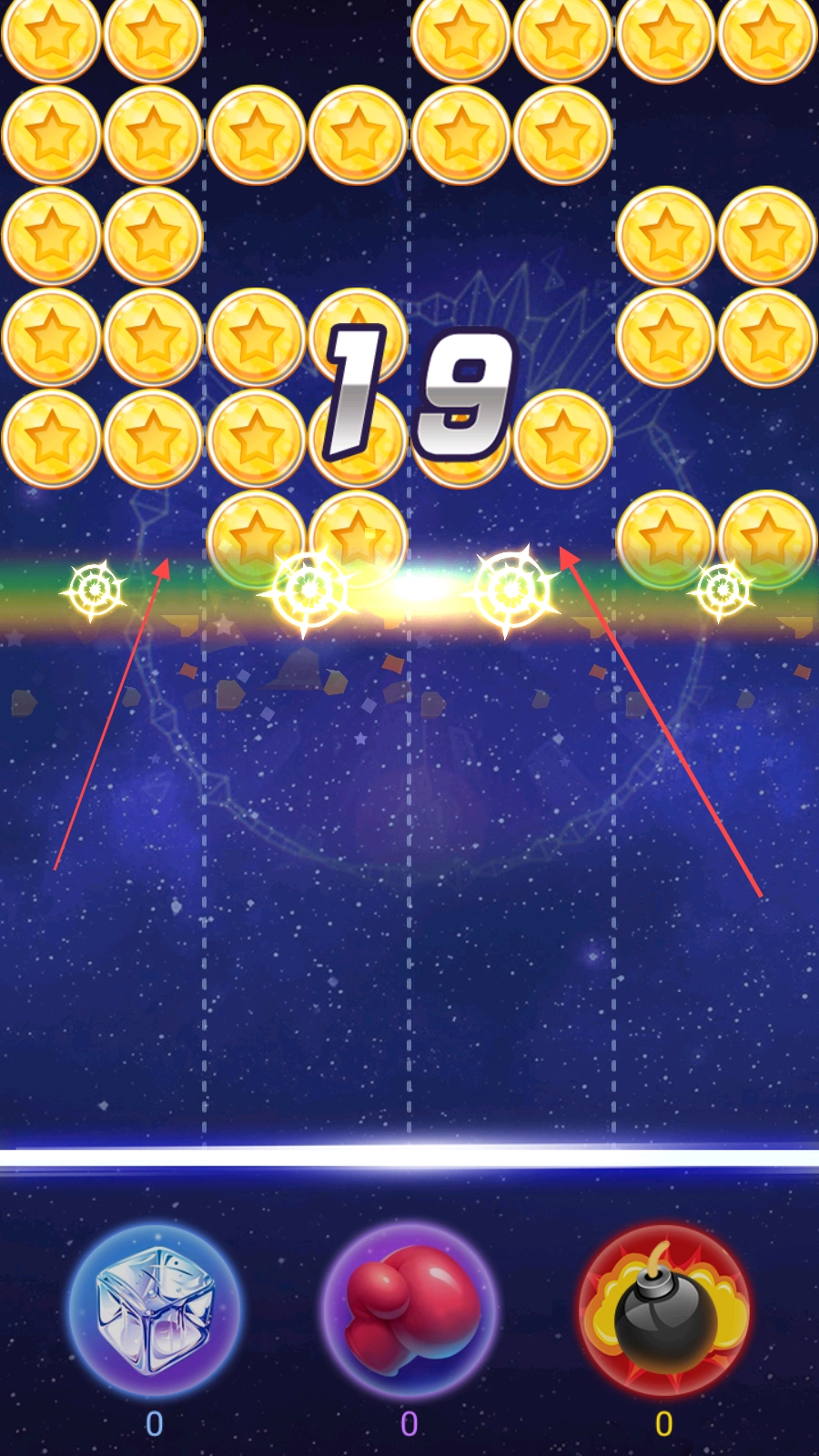 2、把小球填入缺的地方,填满一格就会消一格。