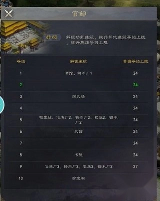 另外,当官邸等级提升到特定阶段时,还能解锁全新的玩法。所以,建议玩家在游戏前期优先升级官邸,这样就能更迅速地体验到新的游戏内容。