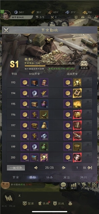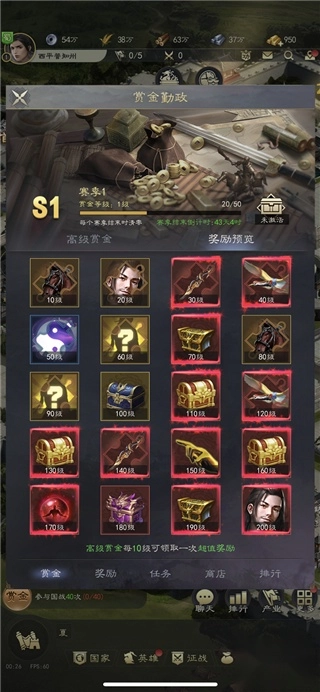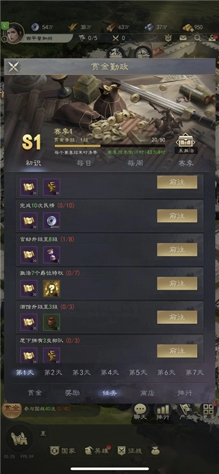 赏金任务涵盖初识、每日、每周、赛季任务以及后续的密旨任务。完成每日任务可积累活跃度,当活跃度达到相应数值,就能领取活跃奖励(其中政绩奖励尤为关键,能解锁更多功能)。