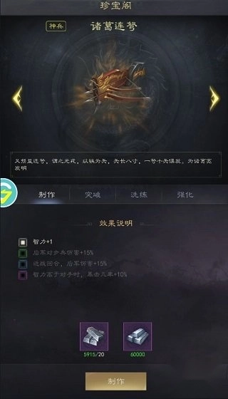 在珍宝阁内,玩家可以选择心仪的装备进行制作。