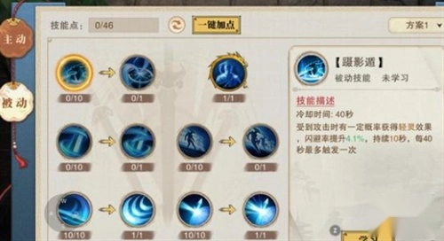 主力技能配置如下:【掠浮影】等级+10(作为切入技能使用)、【七星落】等级+10(承担范围伤害输出)、【幽冥斩】等级+10(负责收割残血目标)、【逐遥光】等级+10(用于安全撤离战场)。