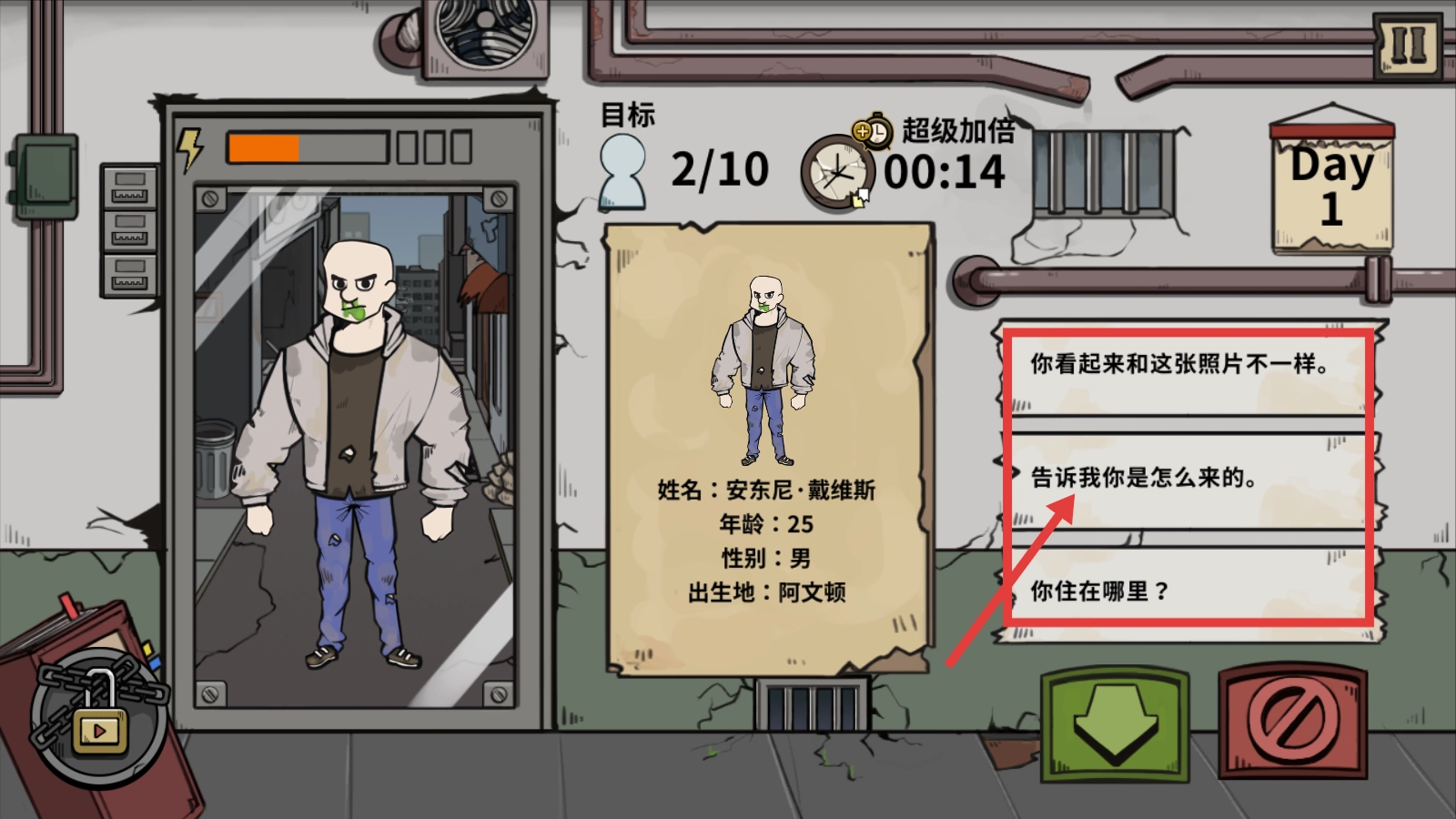 将人物与资料进行比对,注意“你看起来和这张照片不一样”“告诉我你是怎么来的”等判断选项,以精准识别不符合条件的难民。