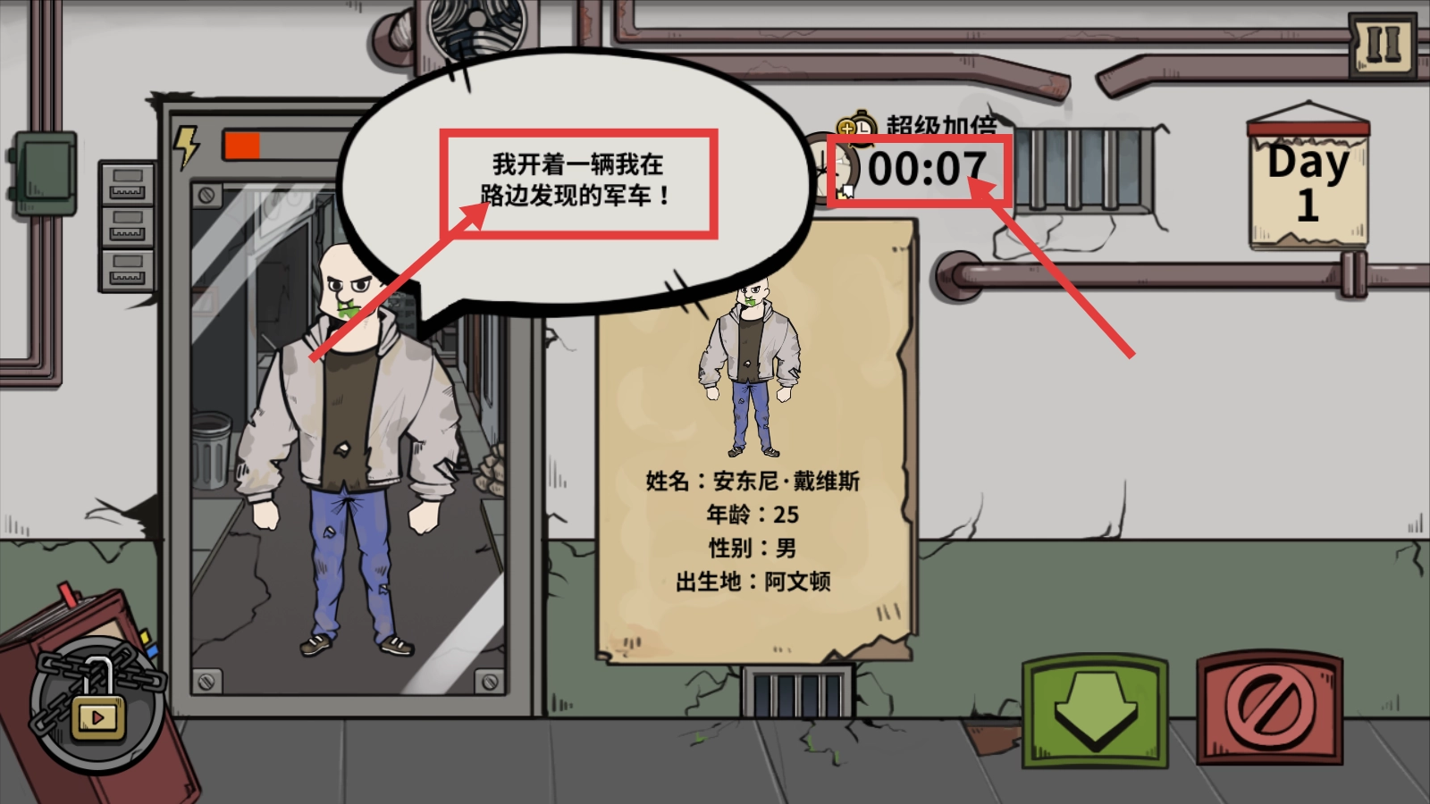 当人物给出【我开着一辆我在路边发现的军车!】这类回应时,要结合时间限制迅速判断其是否满足驱逐条件。