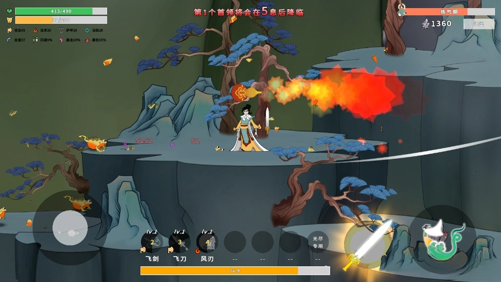超国风仙侠题材的幸存者肉鸽新作震撼来袭!这款游戏融合了超多热门玩法:采集天地间的灵草奇物,历经九重天劫的洗礼蜕变,邂逅数不尽的机缘造化,驾驭周身琳琅满目的神器,修习千变万化的仙门法术,释放全屏炸裂的炫酷神技,讨伐狡黠灵动的小妖,力斩霸道强横的妖皇,收集珍稀罕见的仙宝法器!温馨提示:刷取强力词条容易让人沉浸其中无法自拔,选择机缘时常常难以做出抉择,斩杀妖王之后仍会因剧情或挑战意犹未尽,想要入坑的玩家还需谨慎考虑哦!