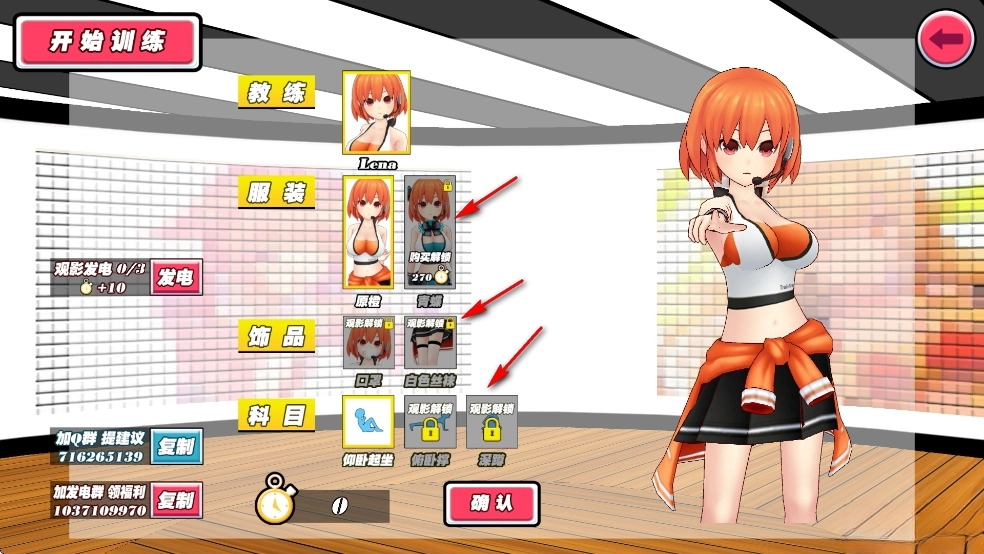 养成激励:玩家可以通过完成健身来进行养成,解锁不同的教练、服装和课程。