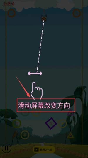 接下来,按照“滑动屏幕改变方向”的提示操作,调整至合适角度后松开手指,发射第一组球,通过撞击目标来获取分数。