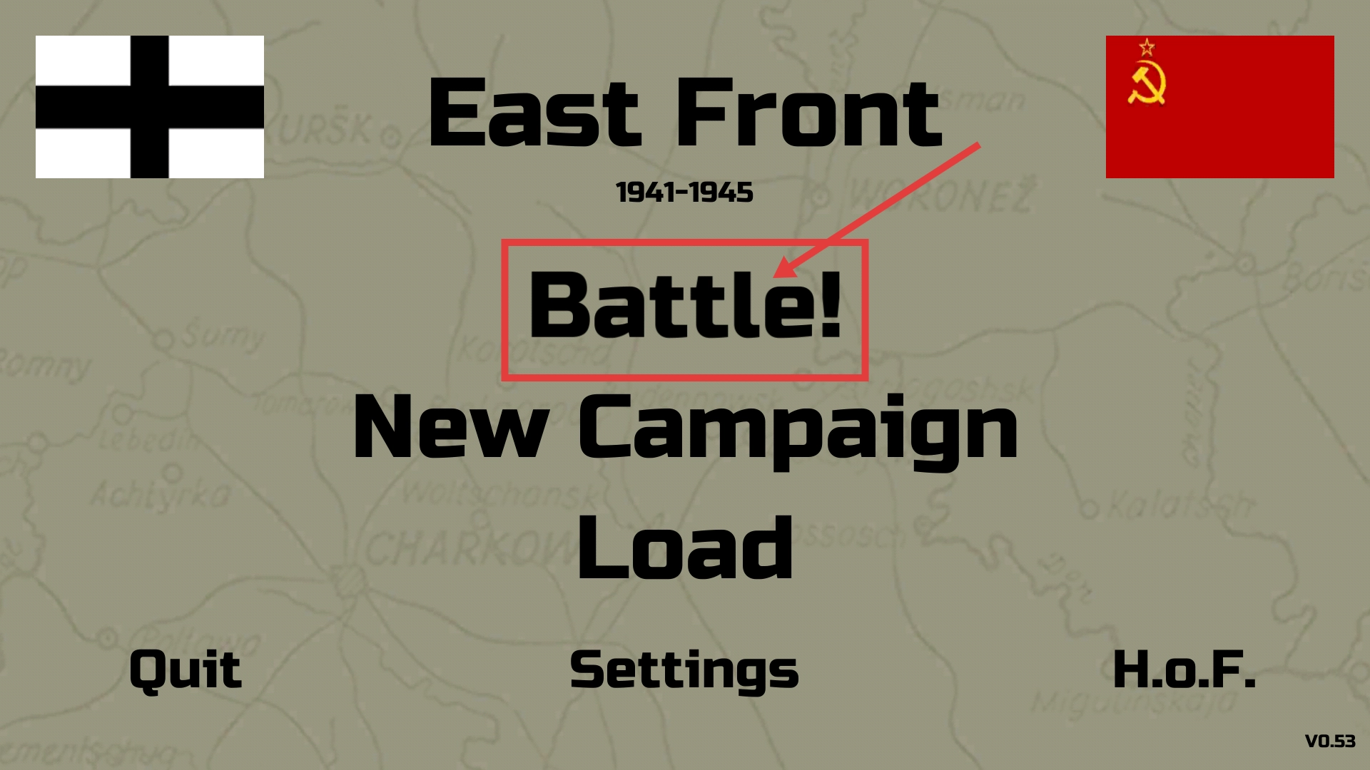 点击【Battle!】按钮,进入“东线1941-1945”战役场景,开启战斗模式,亲身感受二战东线战场的激烈战斗。