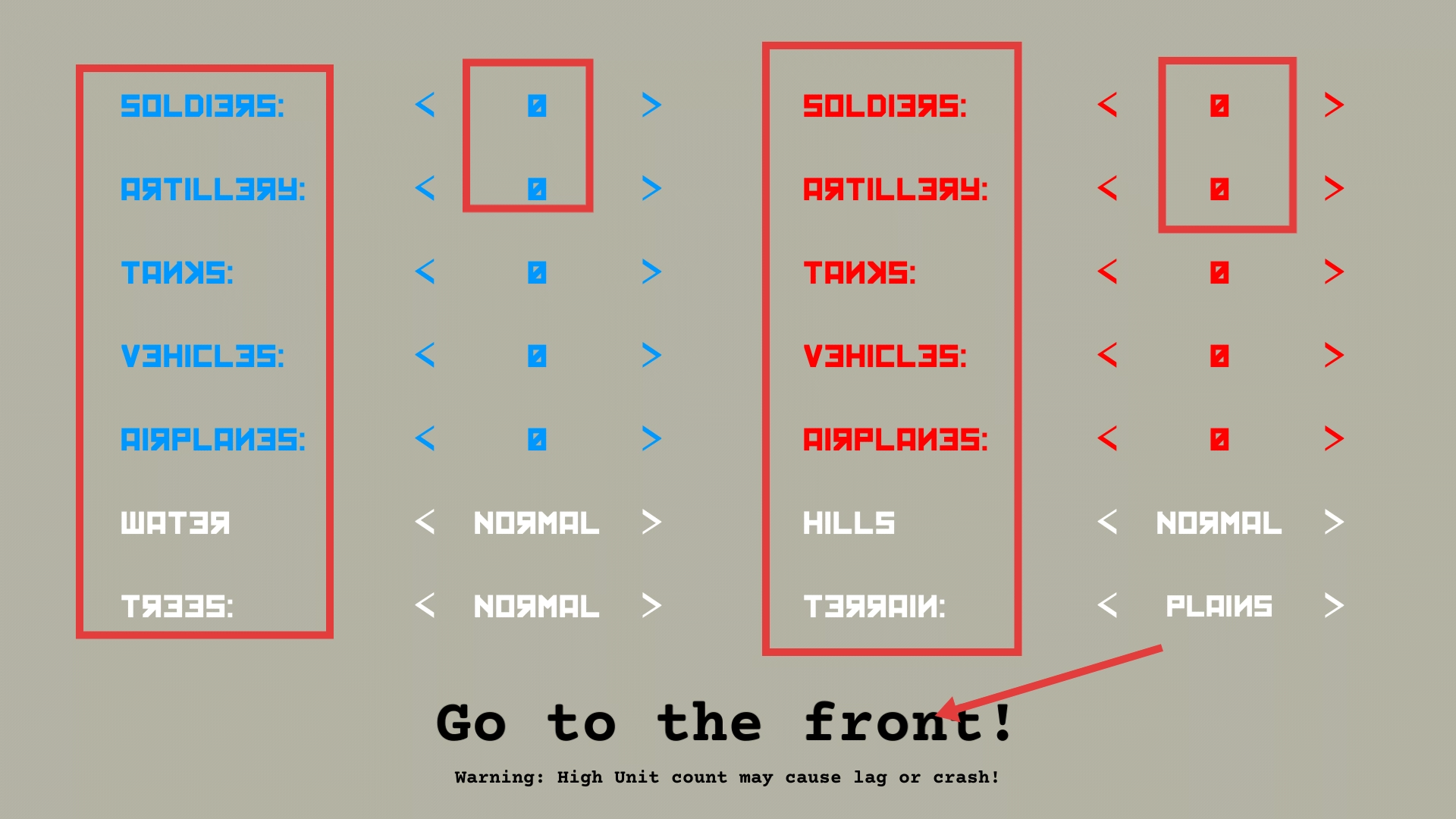 完成士兵、火炮、坦克等作战单位以及地形的配置后,点击【Go-to-the-front!】按钮,即可进入前线区域开启战斗。