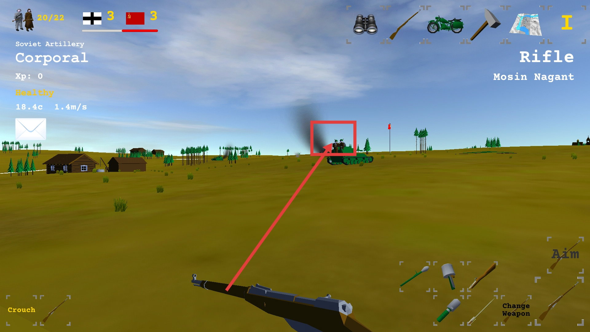 低模3D像素风格与二战主题高度契合,通过简洁的建模手法还原出战壕、碉堡、军用载具等经典战场元素,色彩运用强化了战争氛围的渲染,整体视觉体验舒适且协调。