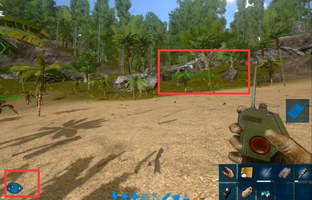 等那些生物走远了,我们就点击屏幕左边的按钮。之后屏幕上会显示出那些生物当前与我们的距离,还有具体的方位。