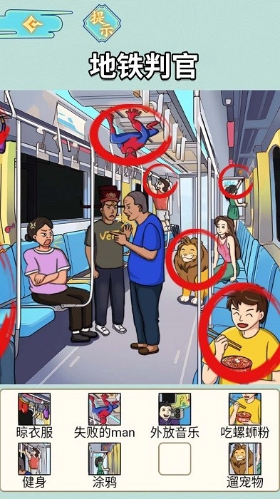 地铁审判官,带来超有趣的休闲找茬体验!这款游戏超考验玩家能力,你得灵活运用自己的本事去完成挑战,还得巧妙操作才行~游戏里能玩的花样特别多,感兴趣的小伙伴快来试试吧!