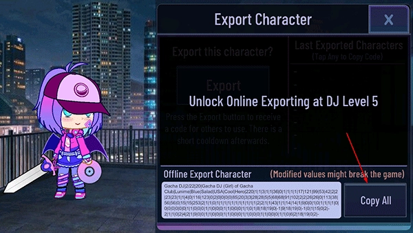 点击输出复制人设代码;