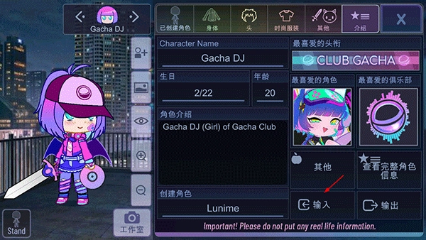 点击“import”按钮可以显示人设,“Back”按钮则用于清除已输入的代码。