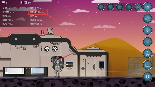 进食结束后,【饥饿/口渴】状态会随之降低,这时可以借助舱内的设备来补充自身状态,并且要持续留意资源和状态的数值变化,以此确保后续生存活动与建造工作能够顺利推进。