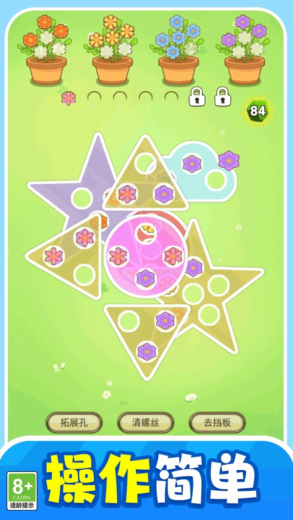 当遇到难搞的关卡时,游戏里有不少好用的道具能帮上忙:拓展孔能让你的操作范围变大,清螺丝道具则可以帮你迅速清理掉挡路的障碍。