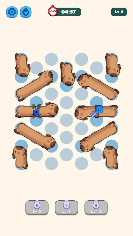 水豚的朝向是固定的,玩家得规划好移动的顺序,防止路径被阻塞,必须找到挪动水豚的关键之处。