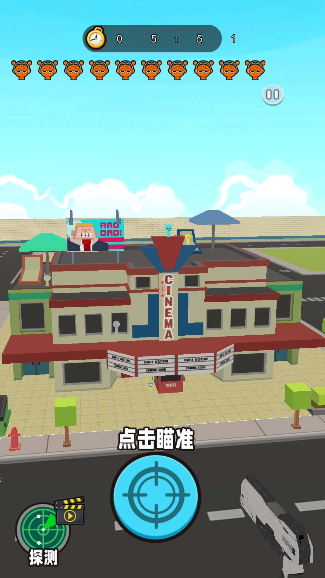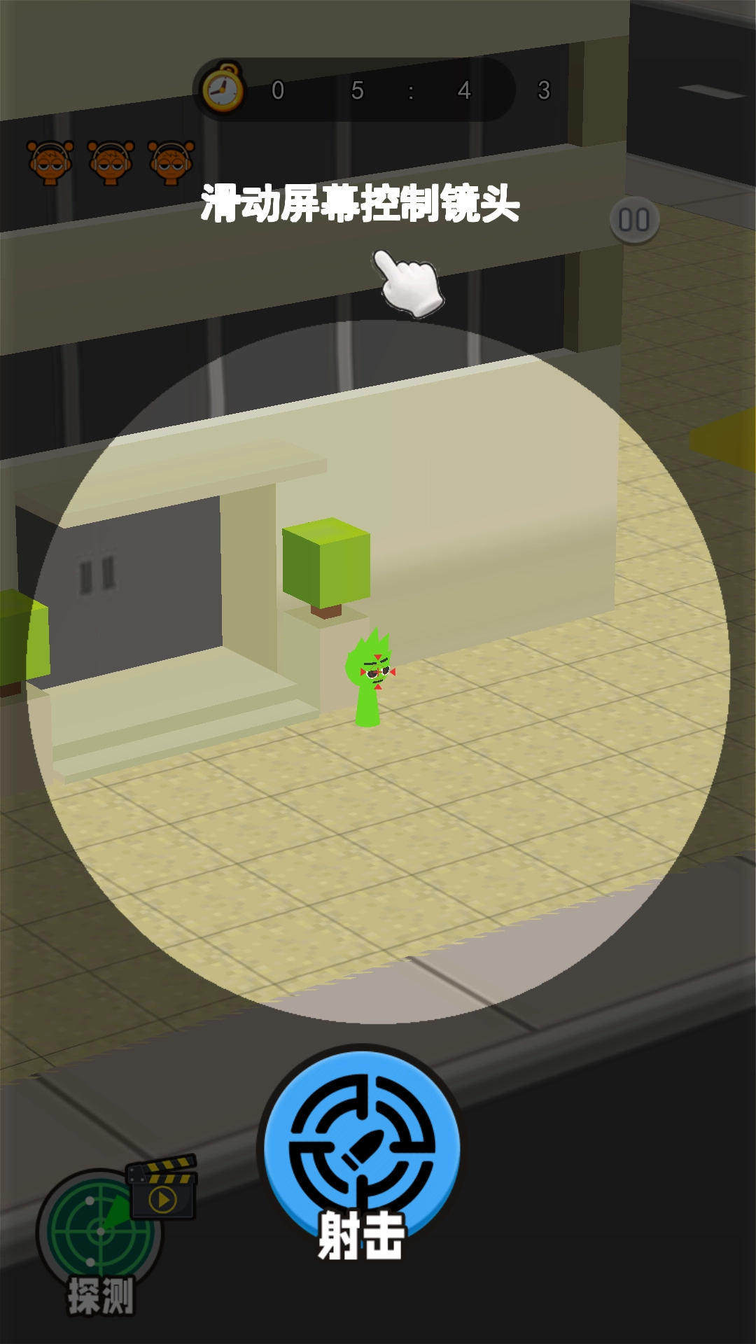 目标藏在场景的各个地方,像建筑物的屋顶就可能有,你得滑动屏幕来操控镜头,认真地寻找目标。