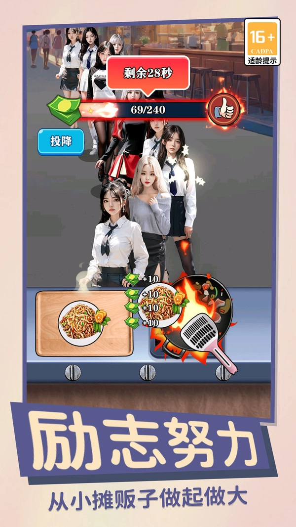 玩家将来到热闹的都市街头,从经营一个简易的炒饭摊开启自己的创业之路。