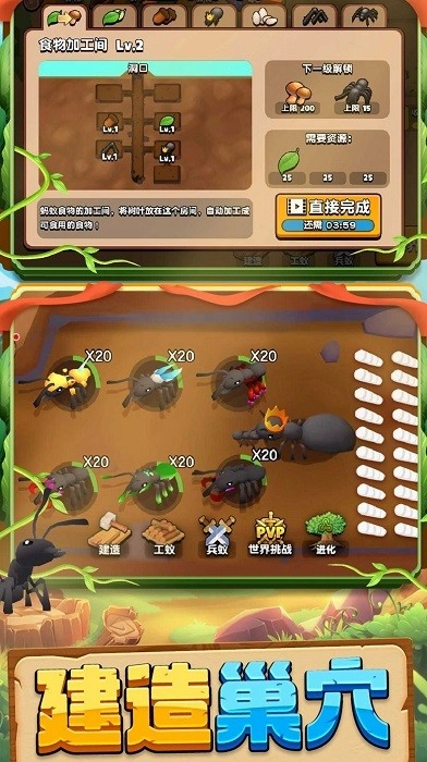 《动物王国大冒险》是一款充满冒险趣味的游戏,玩家能随时随地展开探索,打造出最强大的军队。这款游戏颇具挑战性,需要玩家凭借智慧去解决各式各样的问题。游戏里有多种不同类型的动物,每种动物都拥有独特的能力与技能。玩家要收集资源和物资,构建稳固的基地,还要培育各类蚂蚁来应对挑战。