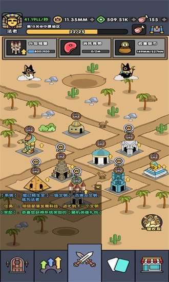 《神级文明进化系统》是一款有趣的经营类游戏。在游戏里,你将化身原始部落的族长,为了推动部落发展,需要持续建造各类设施,并且要招揽引进不同领域的人才。同时,你还得在教育方面投入更多资金。这款游戏以放置玩法为核心,操作简单,能让你轻松上手体验。
