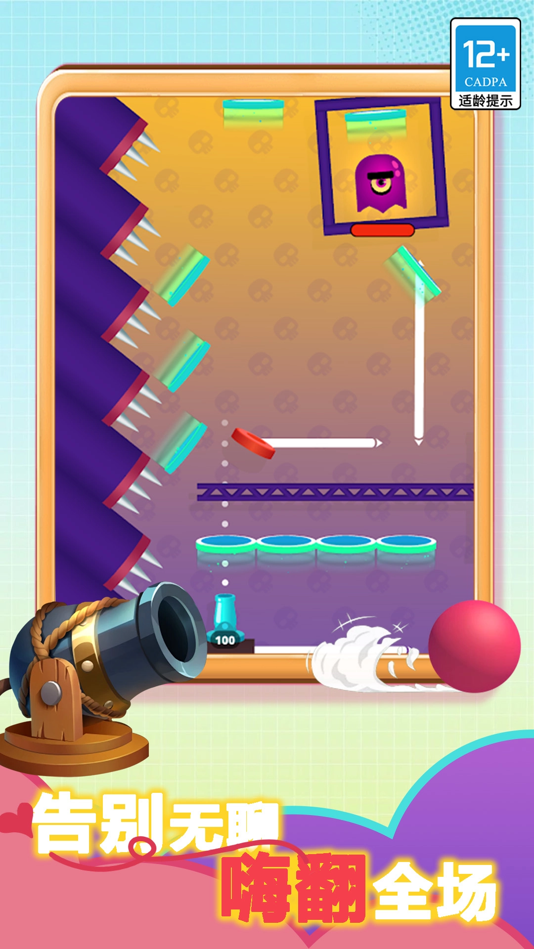 操控大炮发射弹球,把弹球精准射击到指定位置,只要成功让弹球落入桶中就能获取积分,尽情感受趣味关卡带来的乐趣吧。