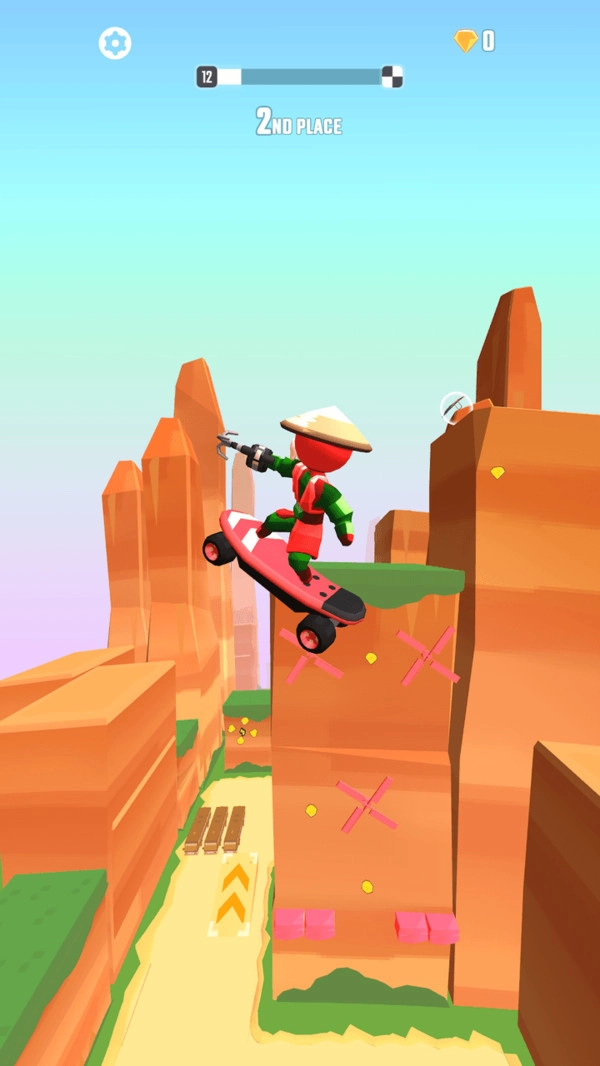 玩家得灵活处理各类阻碍,持续向前推进,直至到达终点,拿下第一名的位置。