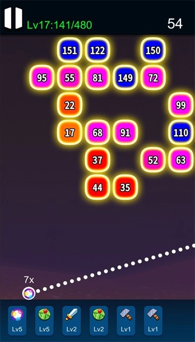 2.在砖块幸存者游戏里,精准打击特殊砖块,触发诸如强化小球、提升生命值之类的增益效果;