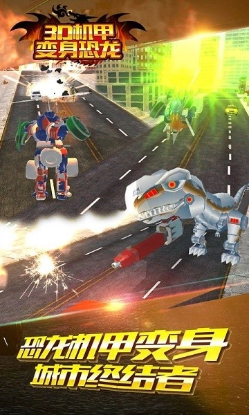 《3D机甲变身恐龙》是一款第三人称动作射击游戏,游戏主角是具备机甲与恐龙双形态的特殊角色。在炫酷且逼真的3D全景画面加持下,玩家能体验到别样的刺激玩法。你需要运用手中的武器与自身的智谋,消灭所有对手,最终赢得胜利并完成对城市的破坏!