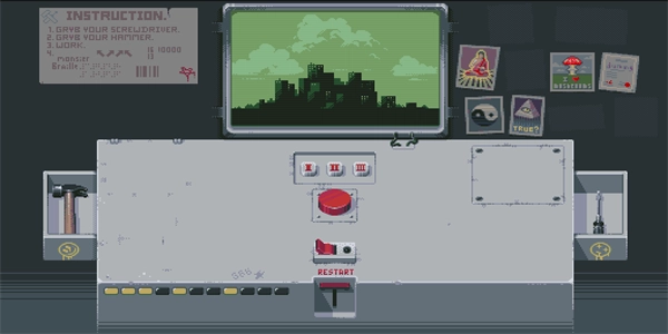 这是一款充满神秘感的按钮模拟游戏。当你临时替一位正在如厕的同事值班时,眼前突然出现了一个神秘的操作面板,面板上仅有一个醒目的红色按钮。尽管你收到过明确的指令,要求不得触碰任何物品,但此刻你内心唯一的冲动,就是去按下那个按钮。一旦按下,你就必须为所有无法预料的后果承担责任,而这些后果可能会有各种各样的发展方向。