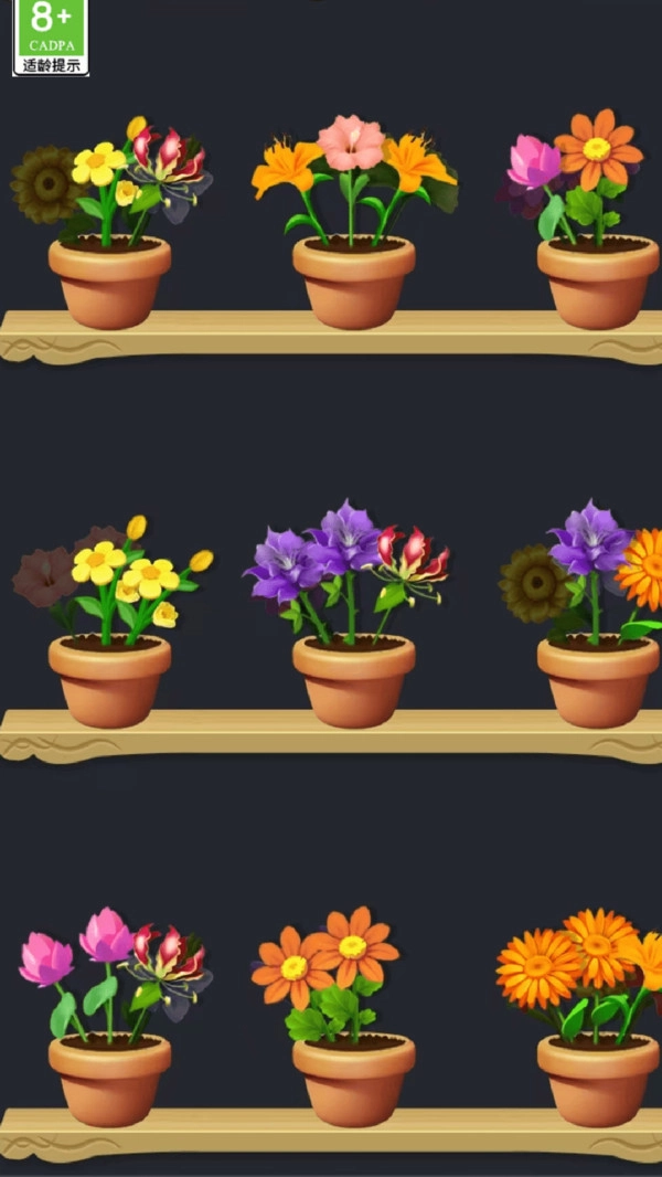 把两盆一模一样的花卉合并起来,就能获得更高级别的花卉,从而让自己的花卉图鉴变得越来越丰富。