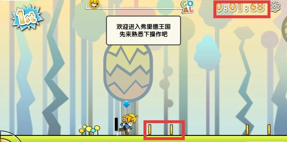 进入【弗里德王国】后,按照提示掌握基础操作,留意界面上方的时间计时。