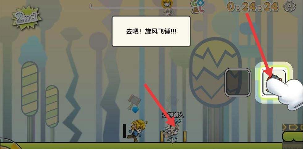 当遭遇敌人(例如【走神路人】这类)时,点击对应的技能按钮(像【旋风飞锤】这样的技能)发起攻击,以快速对敌人做出反应。