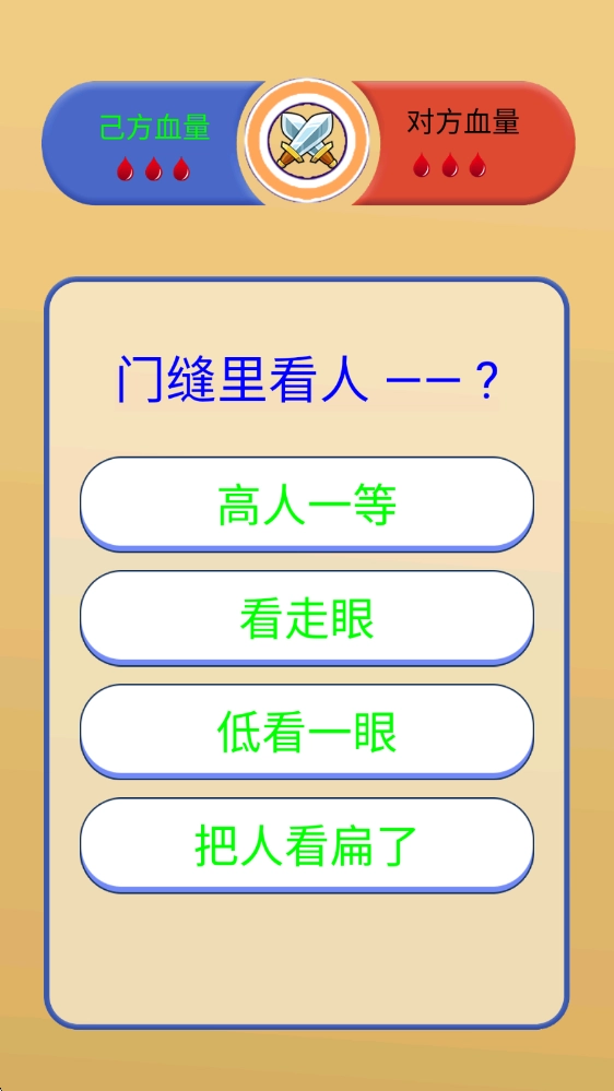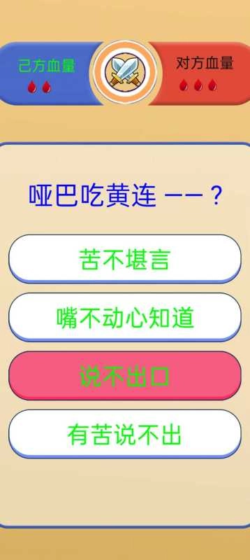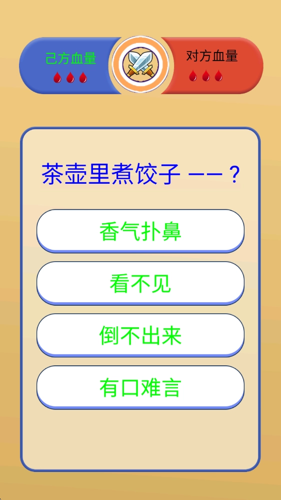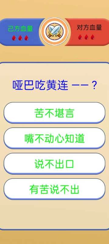 答题模式,依据给出的歇后语前半部分,从四个选项里挑选出正确的后半部分。