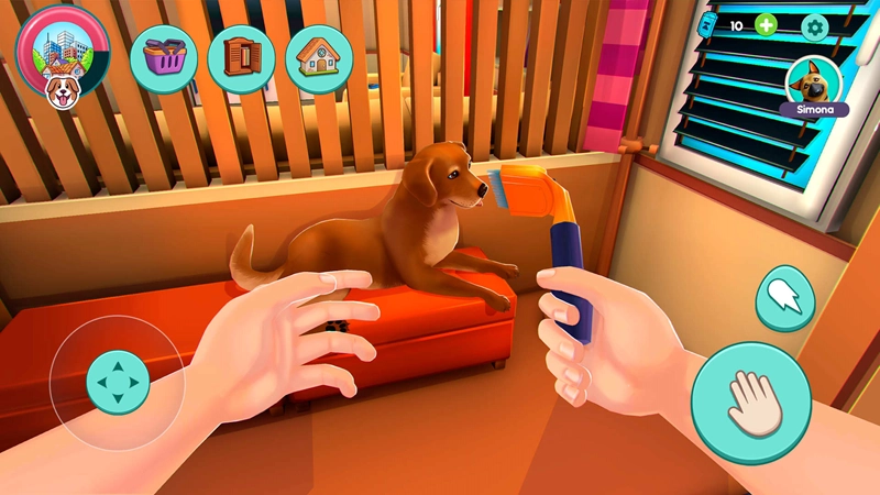 玩家可以通过点击、拖拽等方式和小狗互动,抚摸它的头部,小狗就会开心地摇尾巴;挠它的肚子,它则会就地打滚。
