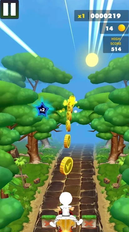 3. 动态音乐随奔跑节奏变化,构建沉浸式游戏氛围,强化整体感官享受。操控角色进行左右移动、跳跃或是下蹲,躲开迎面而来的各类障碍物,尽量延长奔跑的距离。2、收集路上掉落的能量道具,触发短暂的技能,像护盾、加速或者磁铁吸金币,增强生存的能力。3、开启特殊模式,比如“倒计时冲刺”“无限陷阱挑战”这类,带来不一样风格的奔跑趣味。