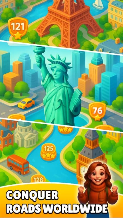 游戏以轻松的点击操作作为核心玩法,融入了创新的交通避让机制,带领玩家从东京霓虹闪烁的街区出发,驶入巴黎充满浪漫氛围的十字路口,再跨越海洋驰骋于纽约车水马龙的街头。每一座城市都有着独一无二的街道布局与交通规则,同时搭配地标性的背景、富有动感的配乐以及精心设计的谜题关卡,为玩家带来如同“解谜式环球旅行”般的沉浸式体验。你需要在拥挤的交通网格中精准把握时机,通过点击来释放每一辆车,确保它们在不发生碰撞的前提下顺利通过路口。