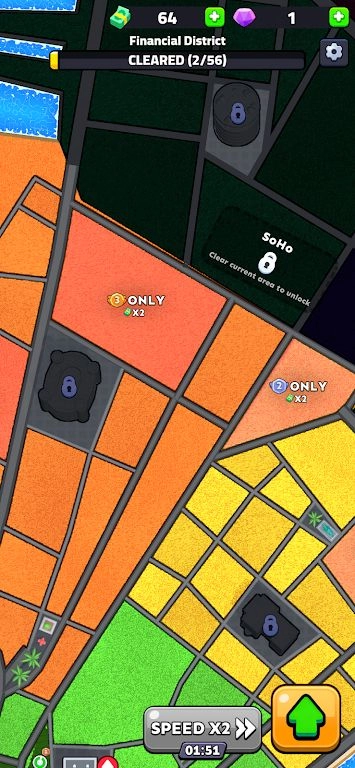 收割下来的作物能够用来换取金币,这些金币可以用来给机器升级,或者解锁新的地图,这样就能一步步把自己的“割草帝国”发展壮大。