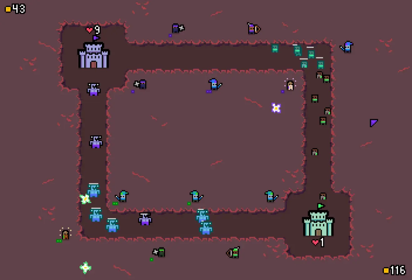 玩家需要依据敌人的兵种与战术,巧妙组合塔楼和雇佣兵,规划出最优的攻防策略。