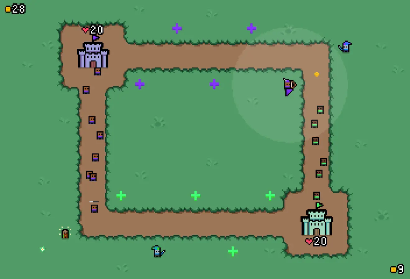 玩家既要守护好自己的城堡,也要主动派遣雇佣兵去攻打敌方的要塞。