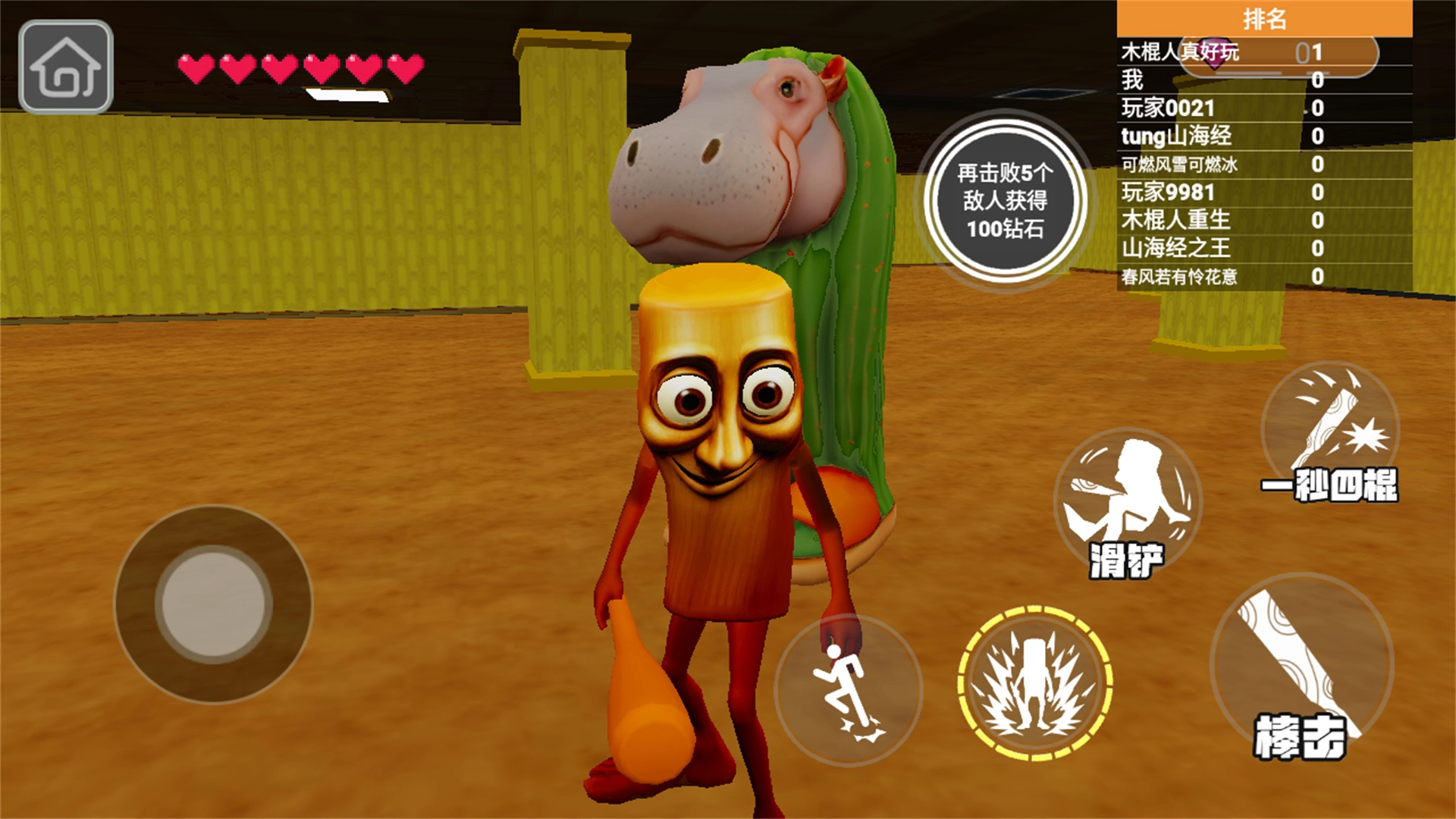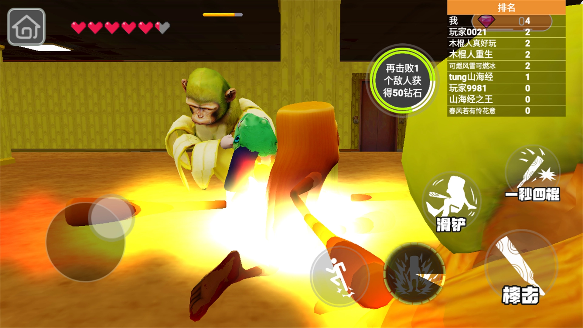 滑动摇杆控制移动,点击技能按钮,释放木棍人专属招式,与敌人展开对抗。