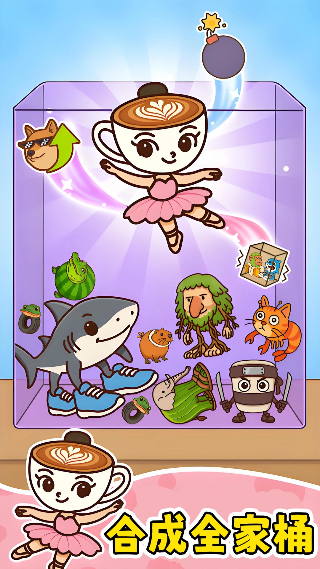 这款游戏的核心玩法在于角色合成——按照特定规则把两只乃至更多角色组合起来,就能创造出全新的角色,你可以自由尝试各式各样的角色搭配组合。