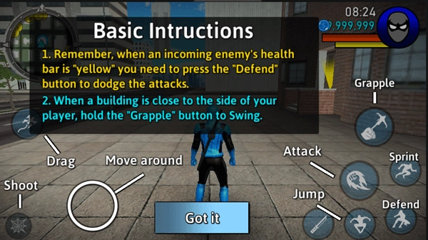 进入游戏后,系统会自动弹出操作教程,这里会教你如何使用蜘蛛丝、跳跃、攻击等基本操作。