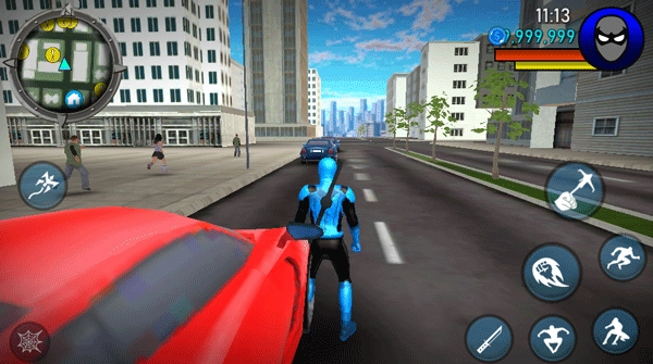 游戏的核心玩法之一,是借助蜘蛛丝在城市的高楼大厦间穿梭移动。玩家按下指定按键释放蜘蛛丝,抓住建筑物后便能快速摆荡,尽情感受极速穿行带来的畅快体验。