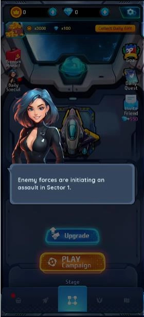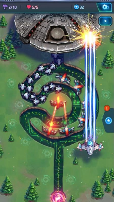 2. 采用精致的科幻美术设计与太空主题音效,营造沉浸式的战场氛围。