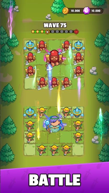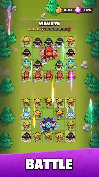 这款游戏节奏紧凑、内容充实,操作起来十分轻松——只需指尖轻点,便能完成排兵布阵,亲眼见证战士们一波接一波地冲锋陷阵,凭借绝对实力碾压对手。你可以通过合并相同单位来提升战士等级,随着进程推进,更强力的种族与英雄也会逐步解锁,每一次进阶都可能成为扭转战局的关键。游戏中,你将遭遇千奇百怪的敌人阵容,需要运用策略智慧压制对方阵型;也能挑战强敌副本、试炼塔等玩法,全方位考验你的应变能力与养成深度。无论你是偏爱轻松收集、战斗合并的休闲玩家,还是钟情策略布局与养成深度的核心玩家,都能在这款游戏里找到专属于自己的乐趣。