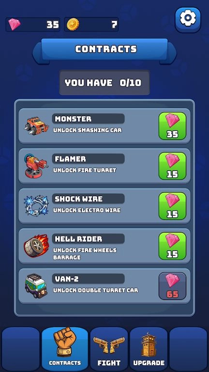 战斗中获得的金币可用来提升车辆的攻击力,也能增加车库的容量;钻石则用于解锁那些稀有的武器。