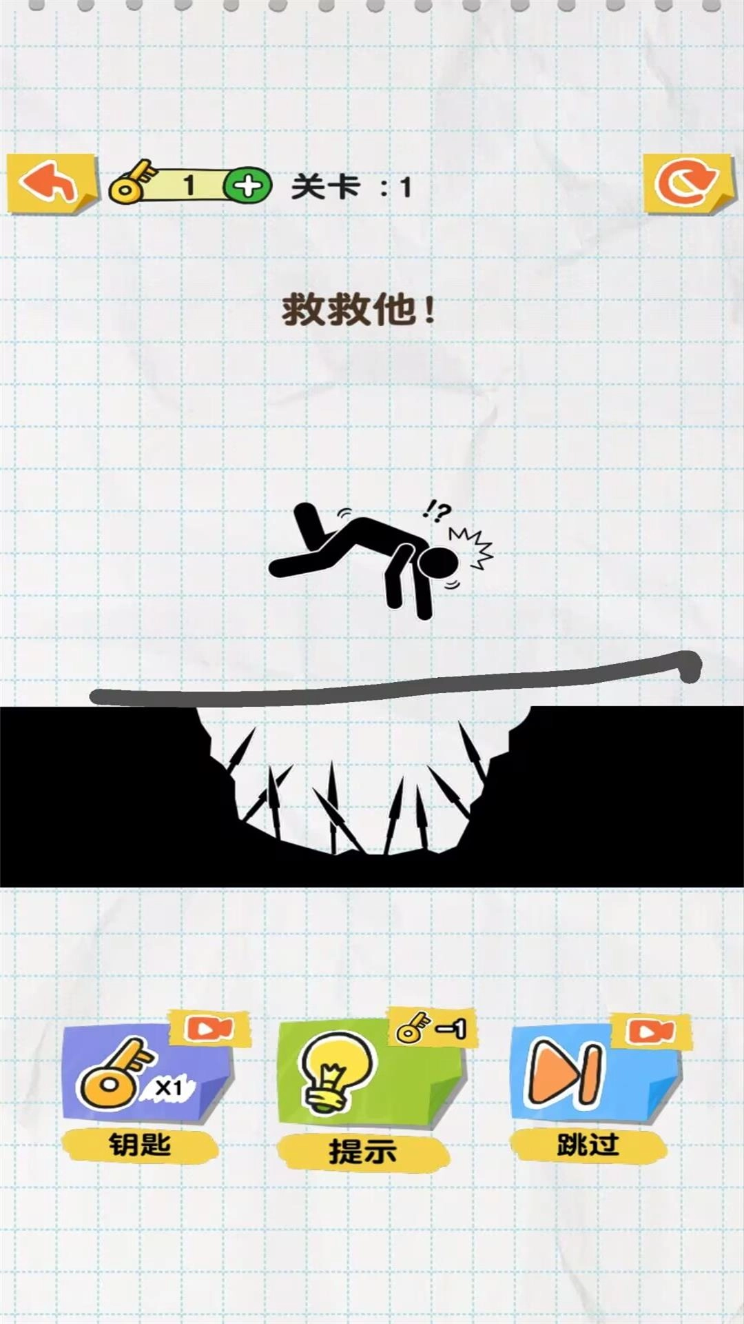 玩家的操作方式是用手指在屏幕上滑动画线,画线时的位置、形状以及长度都起着关键作用,要依据火柴人当下的处境来灵活地进行绘制。