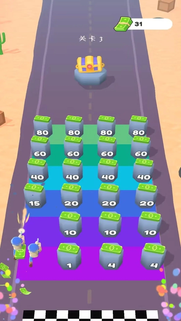 你需要同时指挥士兵避开赛道上的各种障碍,并且和敌方队伍进行对抗,最终通过消灭敌方士兵、第一个冲过终点线或者达成指定目标来赢得胜利。