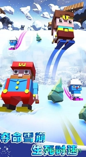 玩家得和雪崩赛跑!操控像素少年在雪地上持续滑行,要快速灵活地躲开雪地上的各类障碍物。