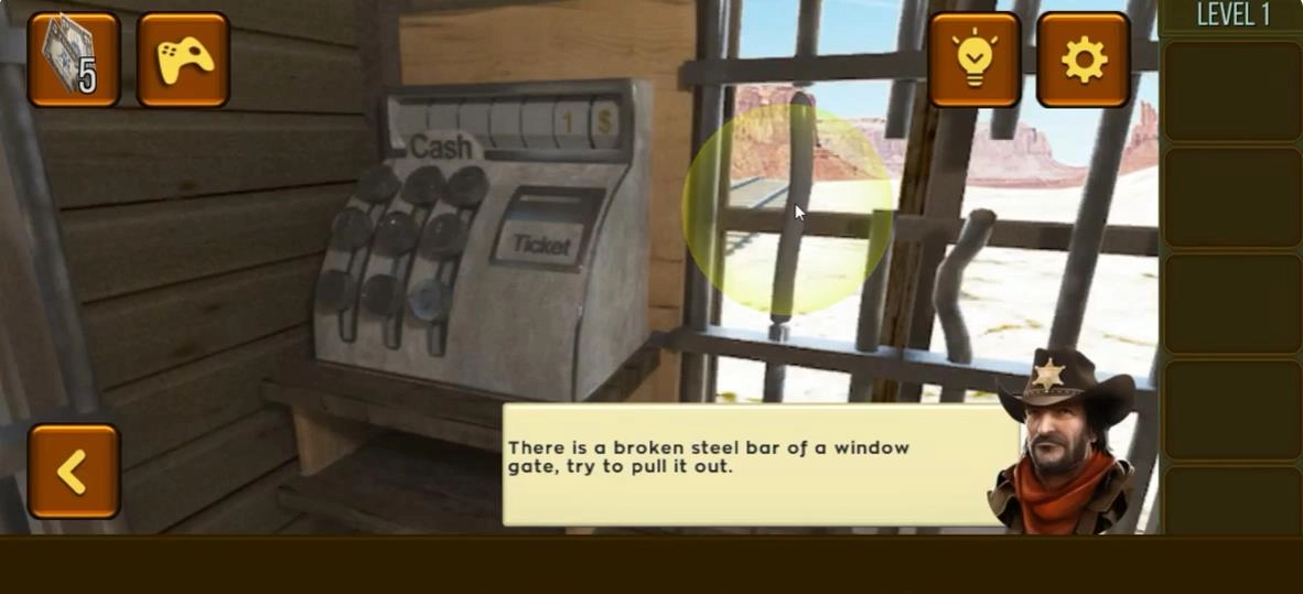 3. 西部故事的主线贯穿全程,充满了转折与悬念,十分引人入胜。通过点击与拖动操作来搜寻线索物品,和场景进行互动以解锁通关的路径。2、要合理运用背包里的道具组合,复杂的谜团。3、注意留意剧情给出的提示,推理出逃脱的关键所在,挑战用最短的时间通关。